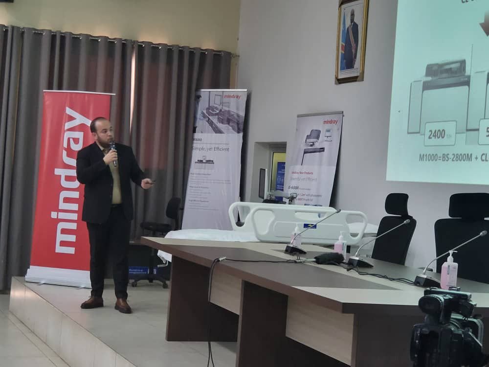 Prenant la parole en qualité d’Administrateur Gestionnaire Central de l’Hôpital Militaire, le Docteur MONGANE Ferdinand a introduit le maître de conférence, RAMZI LAÏCHE, directeur marketing d’AMT Pharma-Distri. Ce dernier a présenté les nouvelles technologies Mindray Clia, soulignant leur rôle essentiel dans l’amélioration de la qualité des analyses biomédicales.